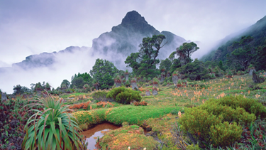 Above left to right: General scene from mountains of Australia; Flame Tree, a stunning tropical tree that flowers without leaves; Bottle Tree; Flame Pea, one of the first plants to quickly provide ground cover after a bush fire.